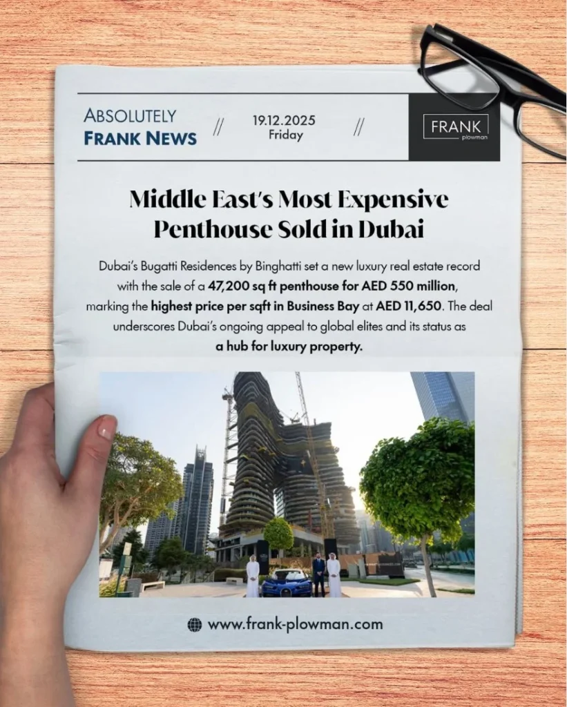 Dubai sets a new benchmark, the Middle East’s most expensive penthouse is officially sold, luxury at its peak.