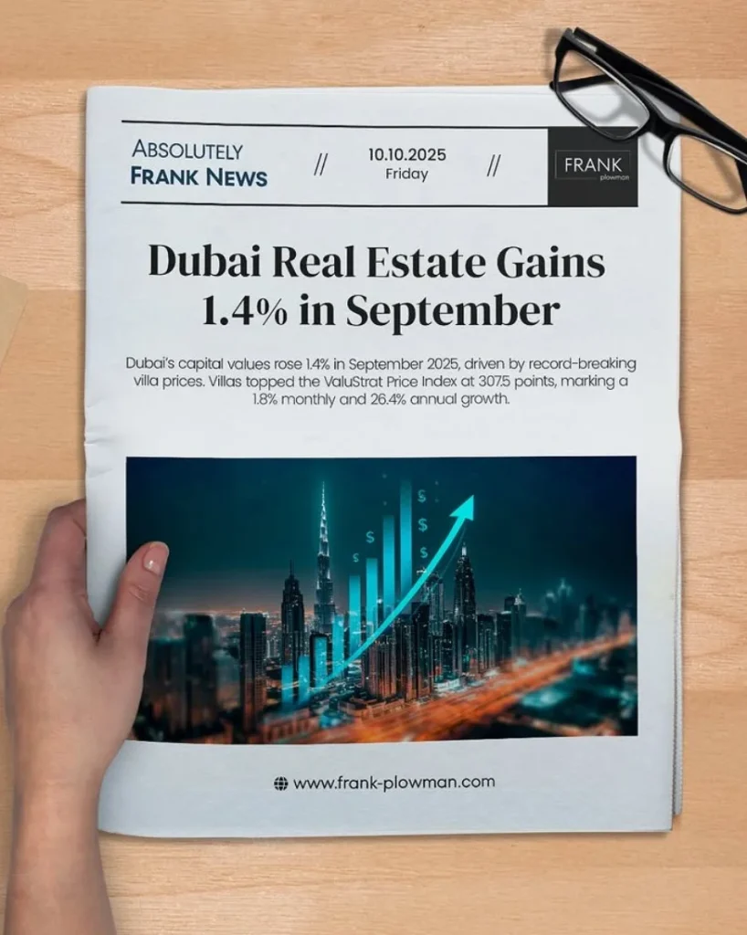 Dubai’s property market just hit another high! Capital values rose 1.4% in September, with luxury villas leading the growth.